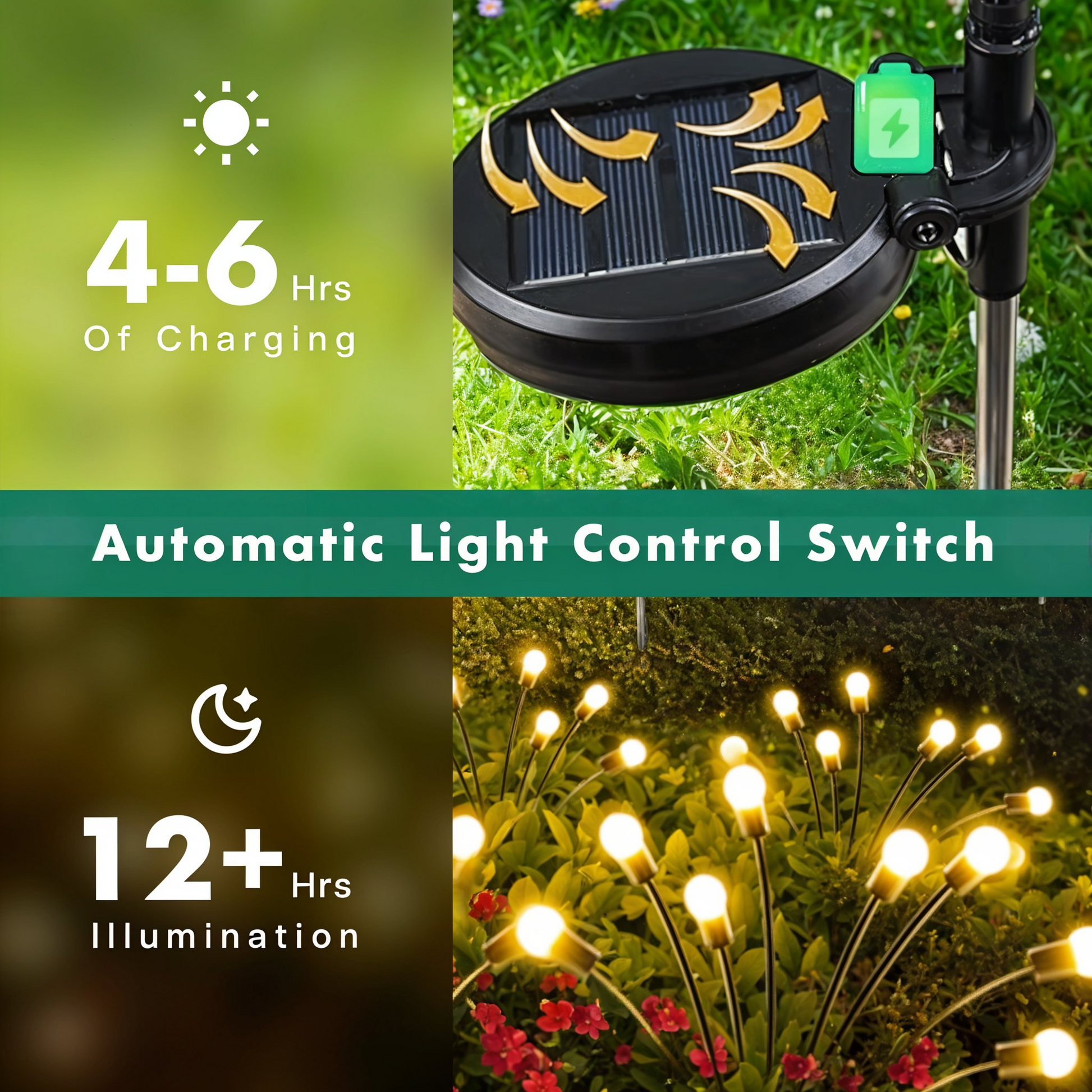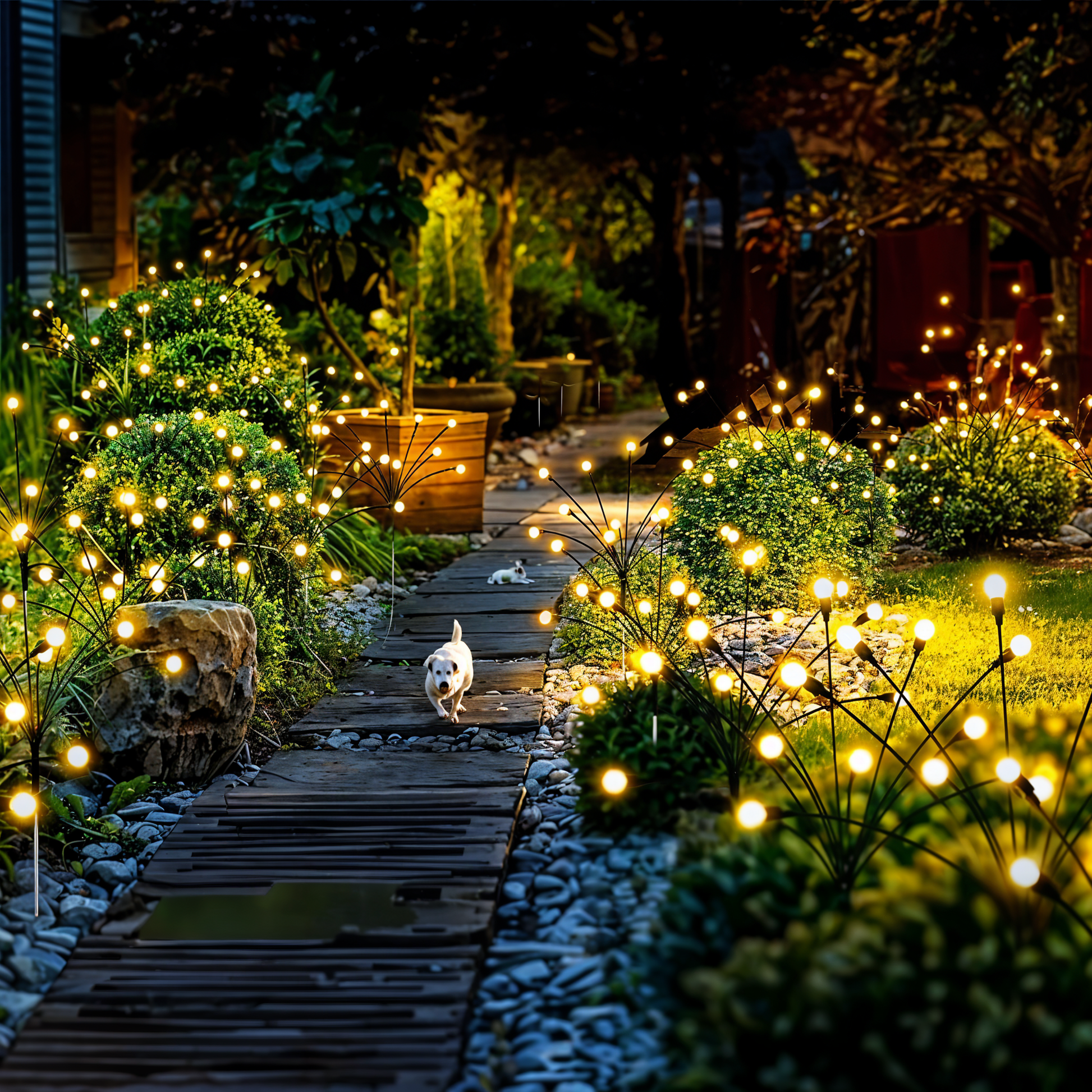Oplys din have med den fascinerende bevægelse fra dansende solcellelys til haven. Disse fortryllende lys drives af solen, hvilket betyder, at du aldrig behøver at bekymre dig om at udskifte batterier eller håndtere irriterende ledninger. Du skal blot placere dem et solrigt sted og se dem komme til live om aftenen.